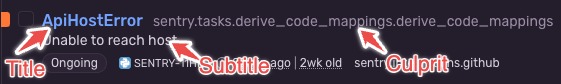 • culprit: str: Where the problem occurred. This could be an api path, a function path, etc. issue properties
